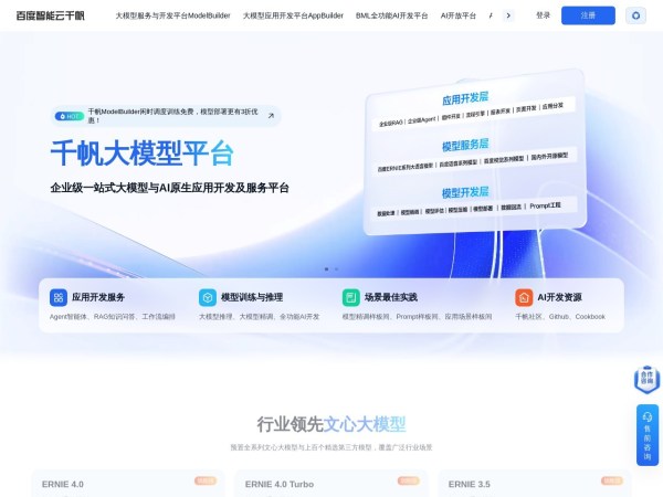 文心大模型企业级服务唯一入口,一站式企业级大模型平台,提供先进的生成式AI生产及应用全流程开发工具链