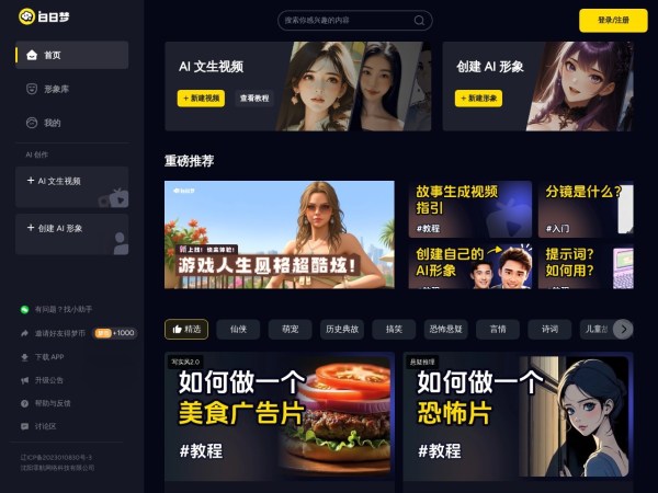 白日梦AI是一款全新的文生视频类AIGC创作平台。支持功能有:文生视频、动态画面、AI角色生成、人物/场景一致性...更多功能,等你来发现!