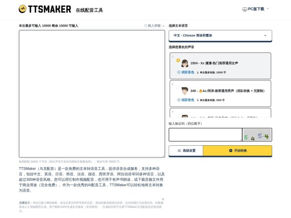 TTSMaker是一个免费的文本转语音工具,也是一个在线文本阅读器,可以将文本转换成语音,它支持100多种语言和多种语音风格,强大的神经网络使语音听起来更加自然,您可以在线试听,或者按mp3、wav格式下载音频文件。