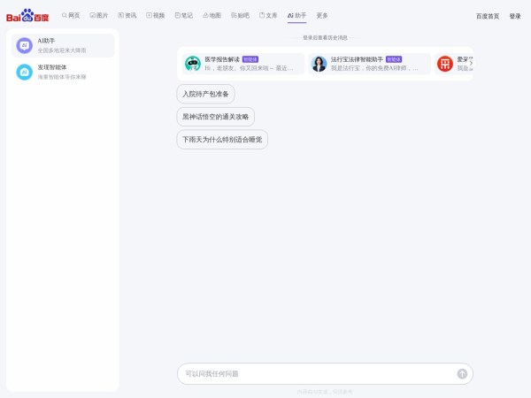 百度出品的AI对话机器人!