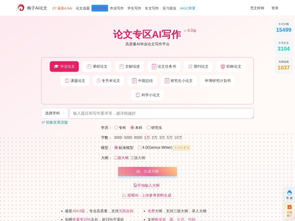 无限免费生成千字论文大纲-在线快速生成论文初稿-查重率10%左右