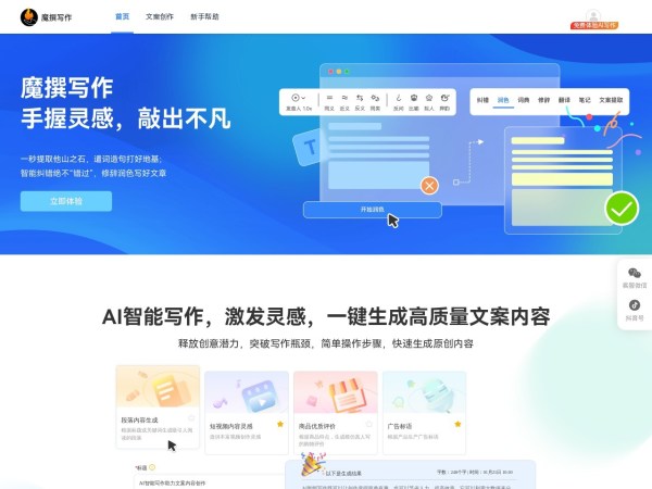 专业级AI写作,多功能AIGC平台,陌言AI是一个企业级AI平台,支持在线智能AI写作,智能AI对话,智能AI客服,能帮你创作各种高质量原创文章、帮你写论文、写代码、写小说、续写文案、文章改写、工作报告等,还有各种AI模拟角色,我们还支持团队模式AI训练知识库,快速训练符合企业要求的AI机器人,大幅降低企业成本 提高企业效率。
