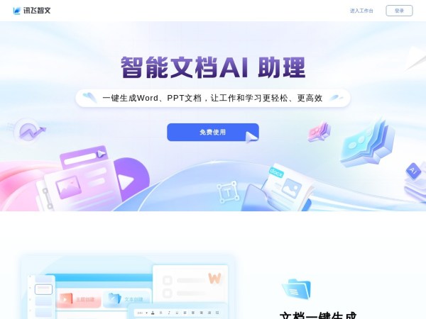 由科大讯飞推出的一键生成ppt/word产品。根据一句话、长文本、音视频等指令智能生成文档,同时支持在线编辑、美化、排版、导出、一键动效、自动生成演讲稿等功能,让AI全流程服务到底。