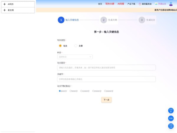 无限免费生成千字论文大纲-在线快速生成论文初稿-查重率10%左右