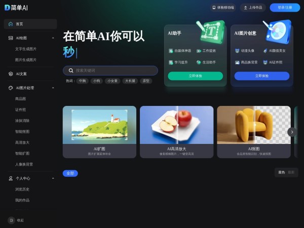 简单AI提供全面的AI社区服务,包括AI作图、文生图prompt社区、AI文案、AI头像、AI素材、AI设计等。以“快人一步,轻松玩转AI” 为理念,致力于让每一个用户都能便捷地使用和理解人工智能。