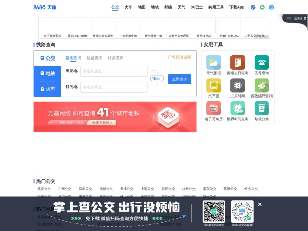 8684公交是数据更新快捷的公交查询网,覆盖400多个城市.提供公交车查询路线,公交车实时查询,公交车线路查询,公交线路,乘车路线查询,掌上公交,城市公交车来了等信息.