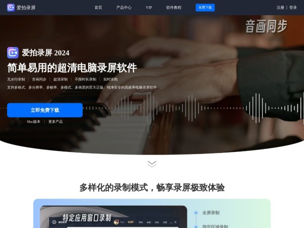 爱拍录屏-适合中国人的简单免费好用电脑录屏软件,可轻松录制电脑,游戏,教学,会议等各类视频,提供全屏,区域,制定窗口等多种录制模式,音画同步无损录制,不限时长一键录制,支持定时录制,一键导出多种格式,涂鸦手写标注,ai自动抠像更换背景,在线推流直播等丰富功能。