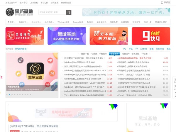 黑域基地致力于打造良心软件的栖息之地。提供最新纯净软件、优秀实用等精品软件,每个软件评测都极其用心,保证软件的安全与可用性!