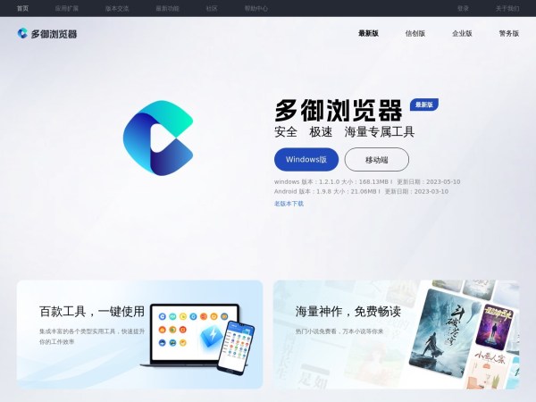 多御安全浏览器,是一款安全浏览器,极速、好用、兼容性好,采用最新Chromium内核,具有钓鱼网站拦截等安全...