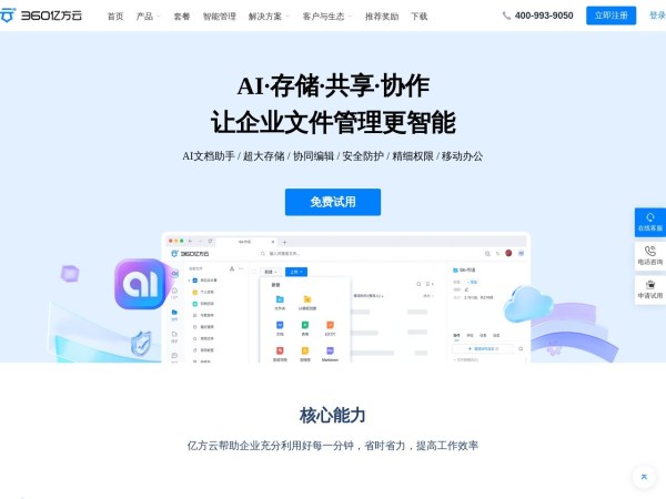 360旗下亿方云是专业的企业网盘(企业云盘)办公平台,为用户提供企业云存储、共享网盘、共享云盘、文件管理、文件存储、共享文件、协同办公、移动办公等解决方案,保障企业数据的安全和可靠性。