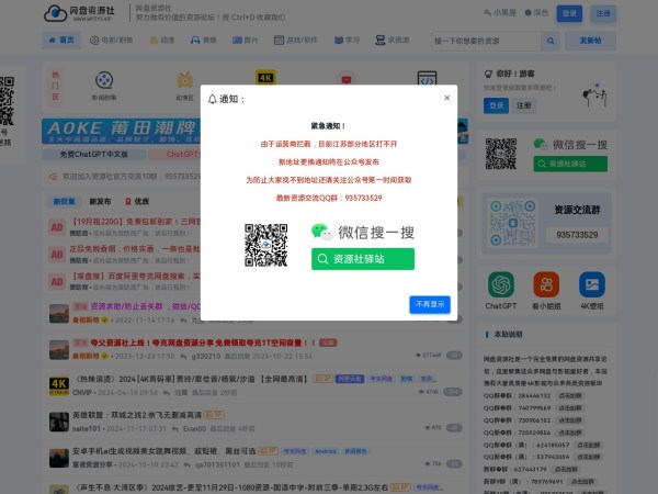 网盘资源社是一个综合免费资源共享交流论坛并有众多网盘爱好者聚集,这里有众多板块如:4k影视剧集,无损音乐,学习资料,软件教程等,注册即可获取和共享资源,专注于打造全面的优质资源共享网站!