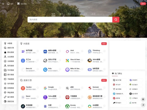 搜索导航是一个搜索引擎资源导航网站,包括书籍搜索、影视搜索、匿名搜索、学术搜索、企业搜索、法律搜索、医药搜索、图片搜索、台词搜索、动漫搜索、网盘搜索、bt磁力搜索、软件搜索、题库搜索、医药搜索、AI搜索、综合搜索等,帮助用户在工作生活领域提高效率.。