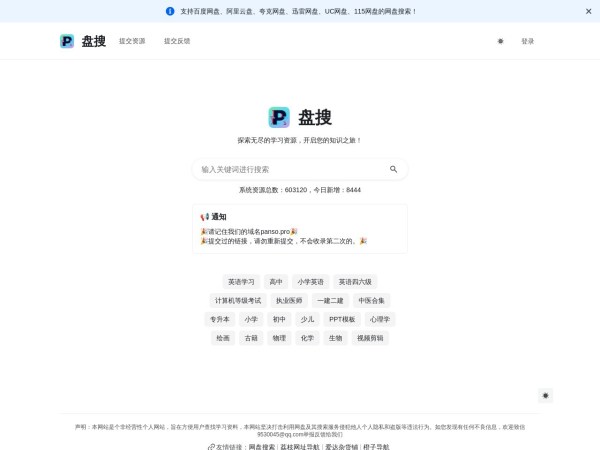 学霸盘是百度网盘资源搜索引擎,提供抖音,短视频,课程,考研,PPT模板,电子书,会计,计算机等热门资源,实时检查无效资源,帮您更快捷的获取网盘资源下载信息。