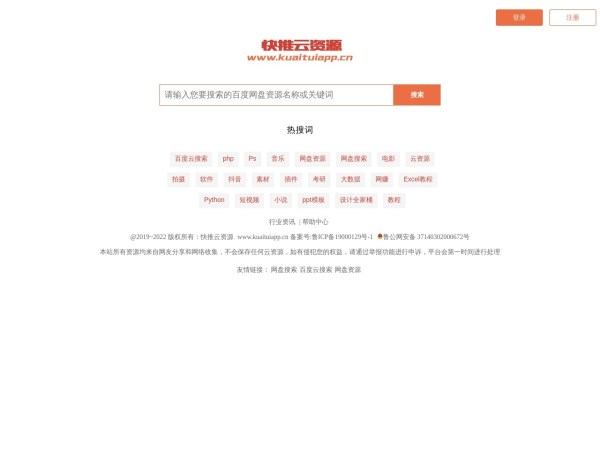 快推云资源是国内首屈一指的网盘资源搜索引擎,目前支持的网盘众多,可以进行百度网盘、阿里云盘、115网盘、蓝奏云盘、360云盘等主流网盘云资源的搜索,本站将会成为您工作和学习不可获取的工具,搜索的
