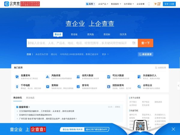 企查查是官方备案的企业征信机构,为您提供全国企业信息查询,包括企业工商信息查询,信用信息查询,经营状况查询等相关信息。查企业,查老板,查风险就上企查查!