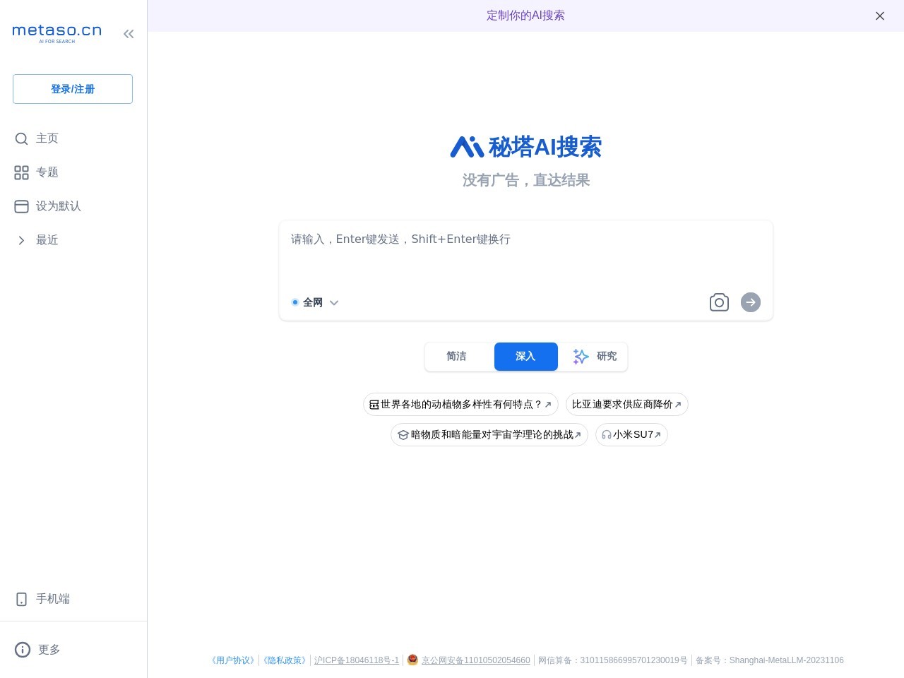 秘塔AI搜索,没有广告,直达结果