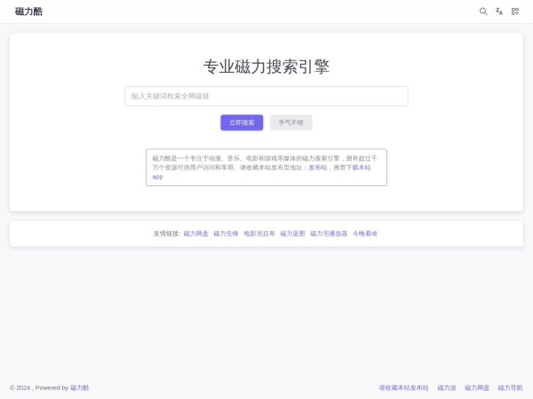 无极磁力 是国际知名的磁力链分享网站、磁力资源搜索引擎。本站是无极磁力官方网址发布平台,访问本站即可直达无极磁链最新域名。