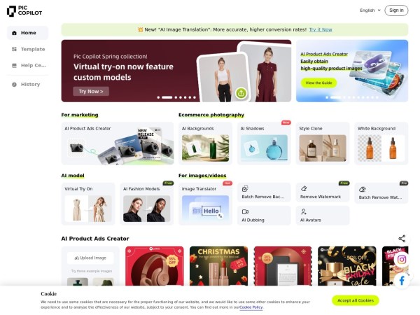 Pic Copilot is an AI-powered image tool designed to enhance the click-through rates of your product marketing images. Leveraging extensive data training by the Alibaba team