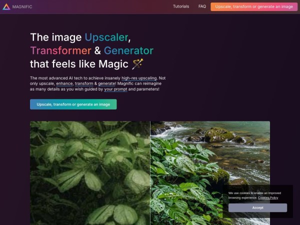 The most advanced AI upscaler & enhancer. Magnific can hallucinate and reimagine as many details as you wish guided by your own prompt and parameters!