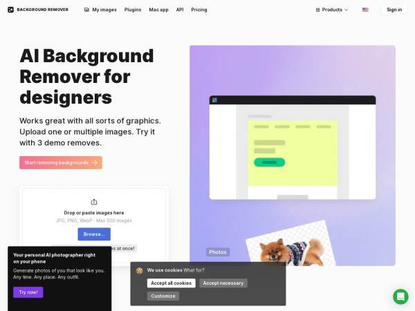 Remove or replace backgrounds from images in just 5 seconds, intelligently adjust colors, all in the browser, no need to upload your images