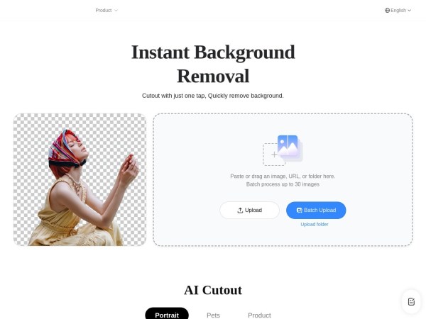 一键抠图网站为用户提供AI智能在线一键抠图换背景服务,还支持物品抠图、人像抠图、证件照换背景、老照片修复等多种图片编辑功能,是一款专为用户提供智能抠图服务的在线抠图软件.