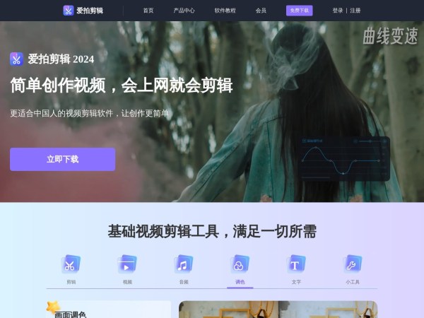 爱拍剪辑-适合中国人的简单免费好用视频剪辑软件,0 基础轻松剪切分割合并裁剪旋转视频,加背景音乐边框去水印加字幕,可以提取音频、配音、调快慢速、添加酷炫片头片尾、添加滤镜动画转场、曲线调速、关键帧、蒙版并且支持ai语音转文字、ai文本朗读、ai智能抠像、ai智能防抖和ai人像美颜等智能剪辑技术,可用于照片制作视频、婚礼视频、企业营销短片、一键导出MP4、GIF 等多种格式,支持压缩大小。