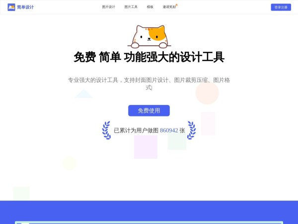 简单设计是一款专业强大的在线设计工具,图片处理工具,包含海报设计、封面图片设计,LOGO设计、图片压缩、图片裁剪、图片格式转换等功能,是一款良心好用的设计神器。