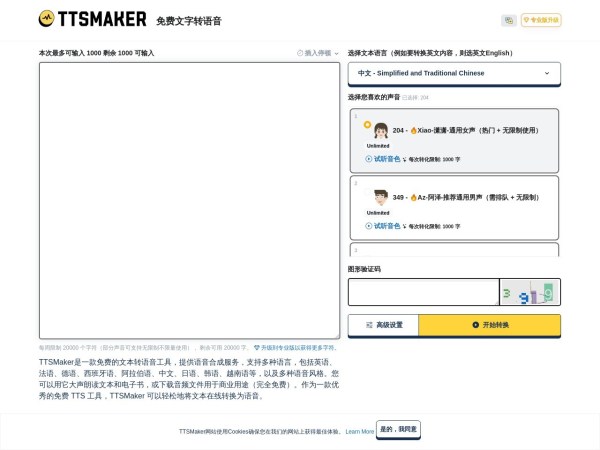 TTSMaker是一个免费的文本转语音工具,也是一个在线文本阅读器,可以将文本转换成语音,它支持100多种语言和多种语音风格,强大的神经网络使语音听起来更加自然,您可以在线试听,或者按mp3、wav格式下载音频文件。