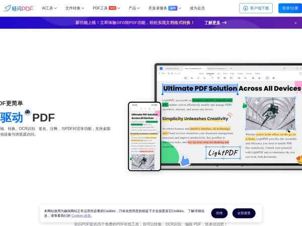 一体化在线 PDF 工具包 处理 PDF 文件所需的所有工具:编辑、转换、合并、压缩、签名等。
