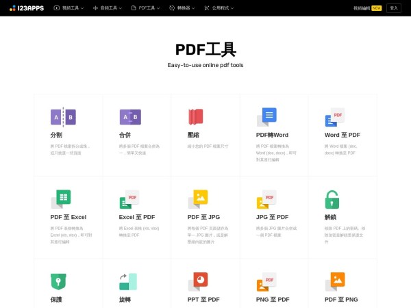 在线免费的PDF转换器,可以在线将PDF转换成Word,Excel,PPT,JPG,PNG等格式,将Word、Excel、PPT、Image图像转换成PDF文档,保护加密PDF文件,解锁解密PDF文件,合并和拆分PDF文档。