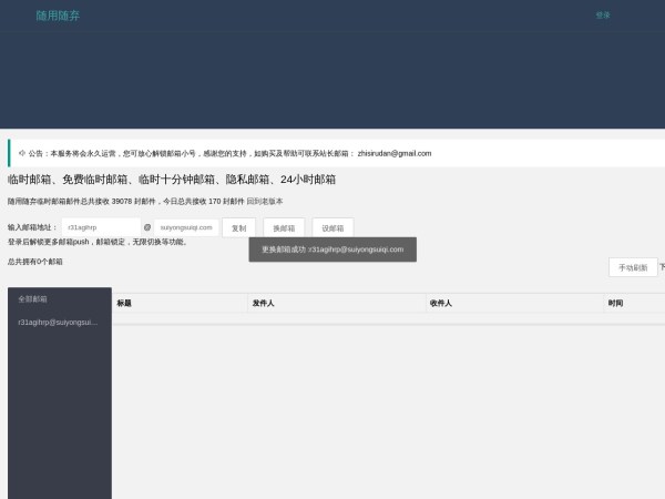 本站提供临时邮箱、抖音视频转文字等功能,皆为全网工作者提供最便利的工具服务,本临时邮箱产品为全网公认最具竞争力,主要功能有:邮箱转移、无限邮箱别名、锁定购买邮箱,在临时邮箱这个产品上,我
