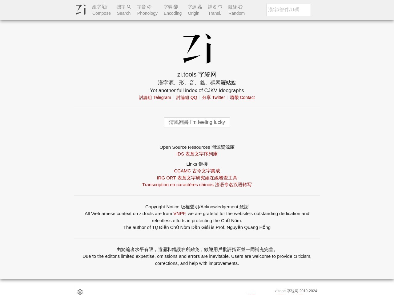 zi.tools 字統网: 漢字源、形、音、義、碼网羅站點。Yet another full index of CJKV Ideographs. 字源学习 字形检索 超大字符集字义查询 全Unicode查询 古汉字字形 汉字读音 动态组字