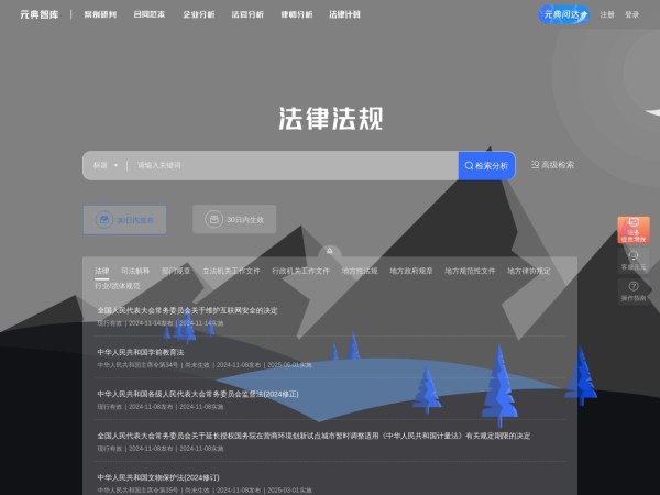 元典智库法律法规查询,面向律师、企业法务、法学师生、法官和检察官等专业法律人提供超过400万法律法规内容的查询,通过法律要素图谱和人工智能技术,帮助用户更好的掌握更新更全的法律规定,是智能化的法律数据库、法律检索系统,是方便易用的全国法律法规大全,也是智能开放的法律搜索引擎。