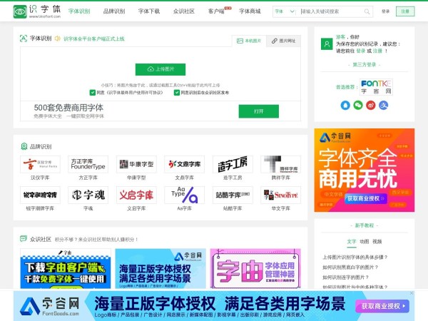 免费在线字体识别、品牌识别、字体下载、字体搜索和问答社区网站