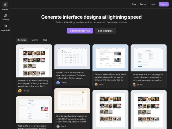 一个UI生成平台,以闪电般的速度生成界面设计!可以轻松快速地进行设计构思