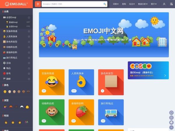 提供了最新、完整的Emoji搜索和相关信息,包括表情符号含义、使用示例、Unicode代码点、高分辨率图片、复制和粘贴,以及Emoji大数据排名、矢量图形和动态图表、智能算法情感分析和表情符号语言学研究。