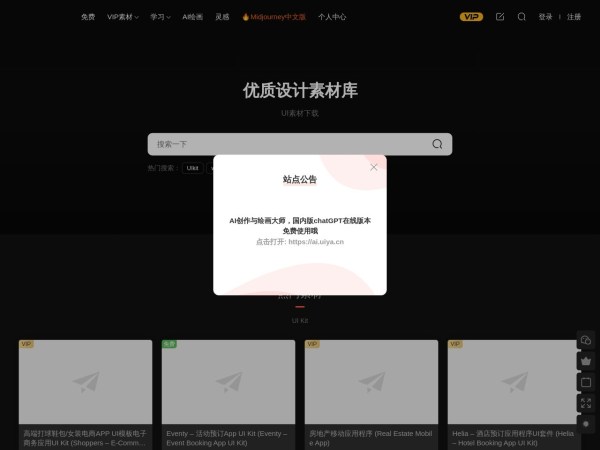 一个高品质ui设计素材共享与ui设计学习平台。提供ui设计,ui设计素材,ui设计源,ui作品集,ui素材下载,3D素材,Figma素材等下载。包含Figma、XD、Sketch、psd、ai、eps、svg、blender等素材源文件下载,midjourney关键词