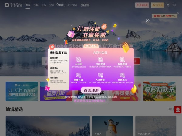 超值!个人限量免费。Adobe Stock中国全站5亿+海量素材放心下