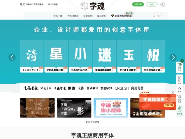 字魂网(全称:是一家提供商用字体下载授权,字体定制,免费字体下载,字体授权,中文字体设计,字体大全以及在线字体转换器的字体公司,致力于让所有人用得起正版 - 是一家提供商用字体下载授权,字体定制,免费字体下载,字体)于2024年11月18日收录在本站设计字体导航分类,并成功建立了索引服务,为用户提供查找/检索服务。