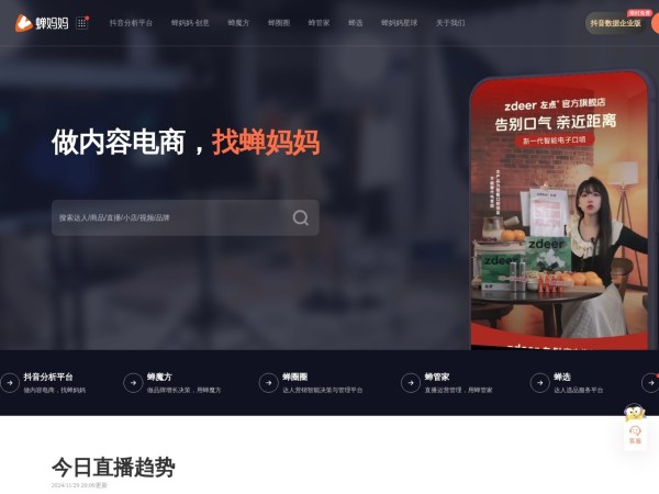 蝉妈妈数据(全称:抖音数据分析平台)于2024年11月18日收录在本站运营数据分析导航分类,并成功建立了索引服务,为用户提供查找/检索服务。