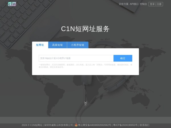 C1N短网址服务,可自定义链接的短网址,支持绑定企业自有域名,无广告,随心所欲缩短网址,链接永久有效,访问数据实时统计,智能过滤假流量,使您更加了解您的用户。