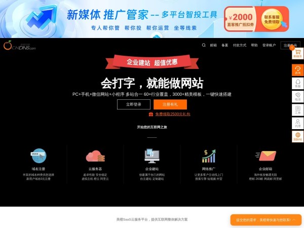 国内领先的企业级云计算服务提供商。提供商标注册、域名注册、云服务器空间、云虚拟主机、电子邮箱等租用的企业电子商务应用网站!