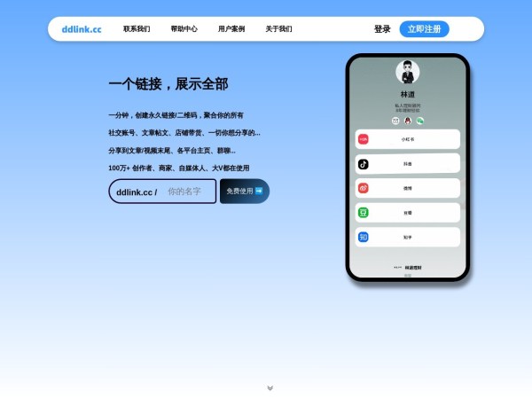 点点链接(ddlink|ddlink.cc),是一款一站式个人主页、导航页和营销工具。可以制作你的主页|数字名片|导航页。聚合你的所有信息,到一个永久链接、二维码、个人网页