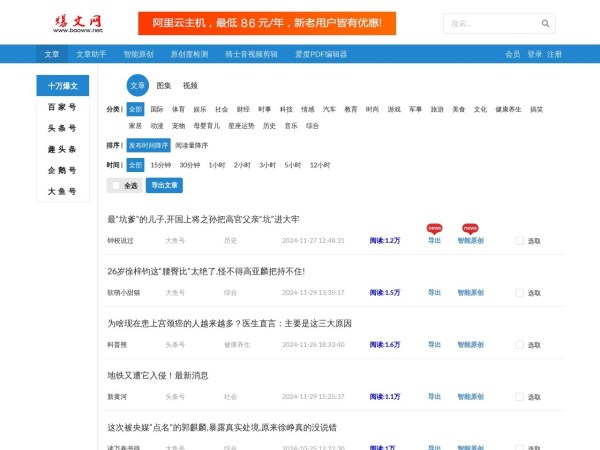 爆文网是一个自媒体数据采集平台,是一个集爆文采集、图集采集、小视频采集、热搜小视频、热点新闻、视频下载、文章处理、文章纠错、分类鉴别等于一体的平台。在这个平台上您可以获取您对于自媒体的全部信息,它会成为您自媒体之路的得力助手。骑士剪辑是一个集视频截取、视频处理、音频处理、视频字幕、电子相册等功能的音视频处理软件
