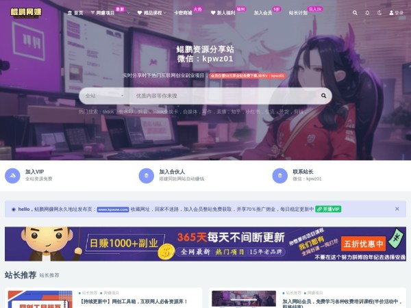 一个集合各种网络课程培训资源于一身的免费学习网站,致力于为大家免费提供各种网上兼职赚钱,网赚创业项目,各种软件网站源码共享,各大直播平台带货营销课程,网店运营推广