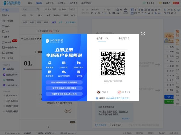 200万公众号新媒体运营者青睐的在线微信编辑工具、拥有万千公众号模板,公众号素材样式、具备公众号排版,多公众号管理,数据分析,定时群发等功能。