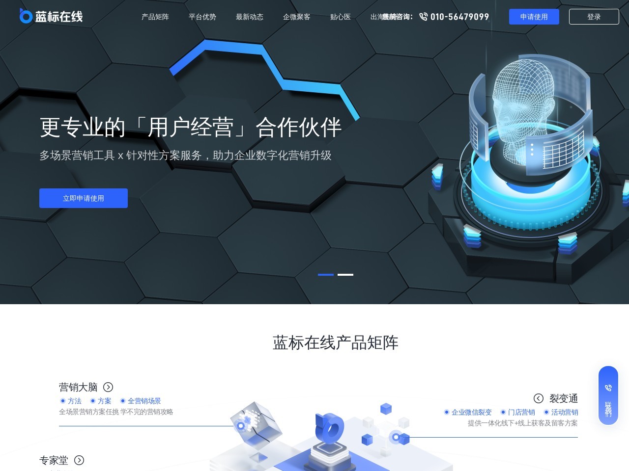 蓝标在线是为企业提供营销规划、数字化内容创作、全员营销、客户精细运营和舆情/商情监控的智慧营销平台。