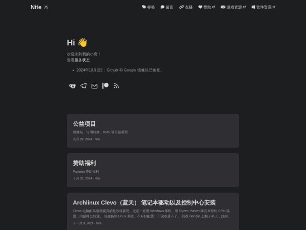 Nite07的小窝是一个分享各式各样应用、游戏资源和实用教程的个人博客。如果你有需要的资源可以在留言板告诉我!