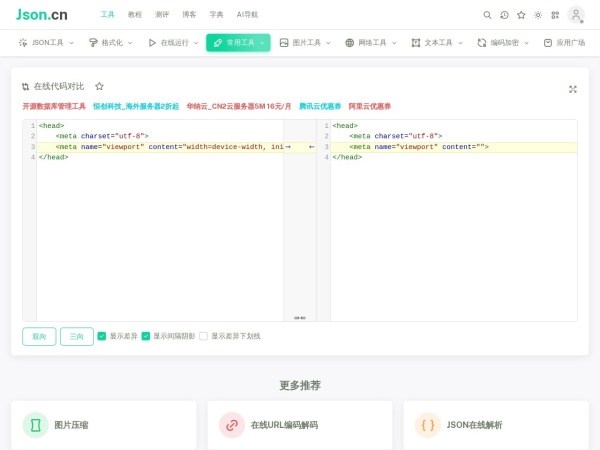 在线代码对比/合并工具方便程序员查找出2段代码间的差异,并能进行合并。