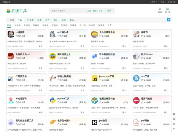 一个简洁的在线工具箱!tools-web,在线工具,在线工具大全,开发人员工具,日常生活工具,办公助手,时间戳转换,加密,解密,md5,进制转换,二维码,正则表达式,json格式化,照片处理,字数统计